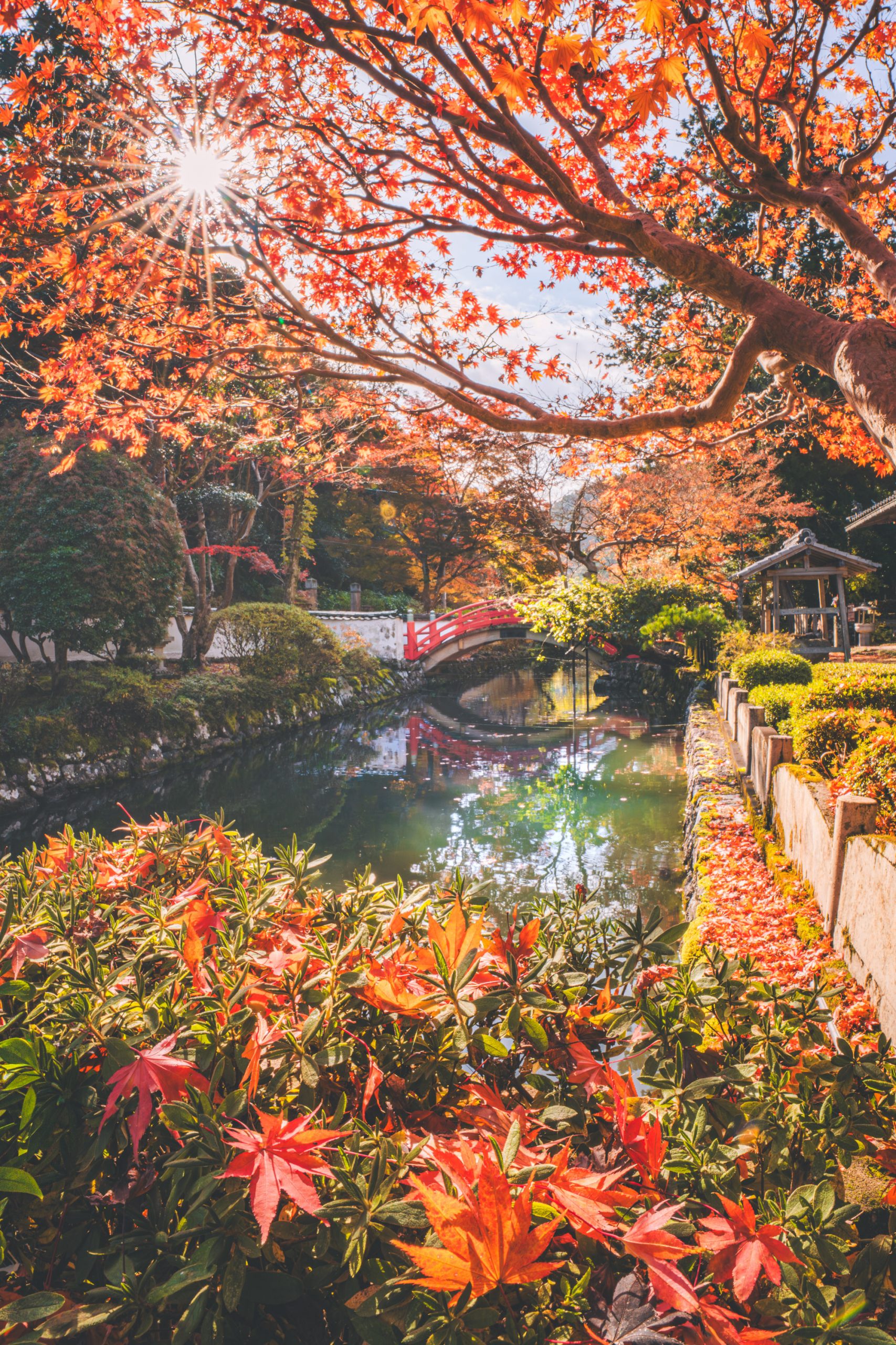 イラストレーターさん、映像クリエイターさんをはじめ、構図の素晴らしさに皆が感嘆した一枚でした。「紅葉の枝の間から差し込む太陽の光が印象的」「手前の紅葉、中央の池、奥の橋へと視線が導かれる流れが美しい」「画面いっぱいに広がる紅葉の枝が空間を包み込み、その下に池や橋が自然に収まることで奥行きと広がりが生まれている」など、コメントが次々とあがりました。